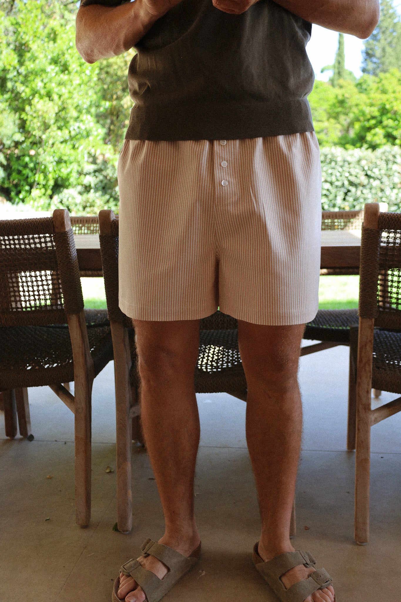 Les caleçons sont unisexes. Ils sont aussi un peu plus longs, avec une braguette fermée et une coupe droite au dos, pensés pour être portés aussi bien en intérieur qu’en extérieur, comme un short un brin décalé.