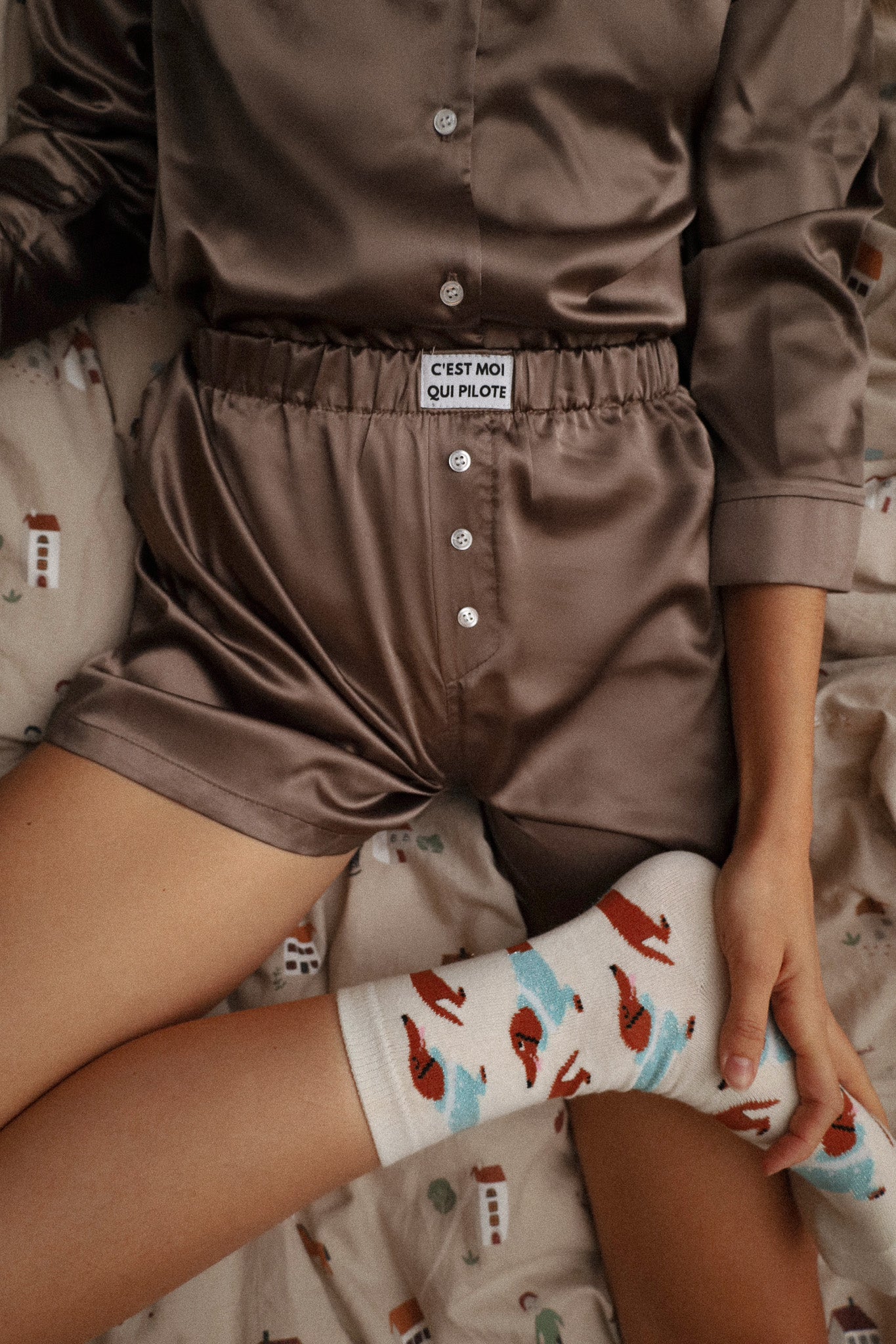 Brauner Pilotenslip aus Satin