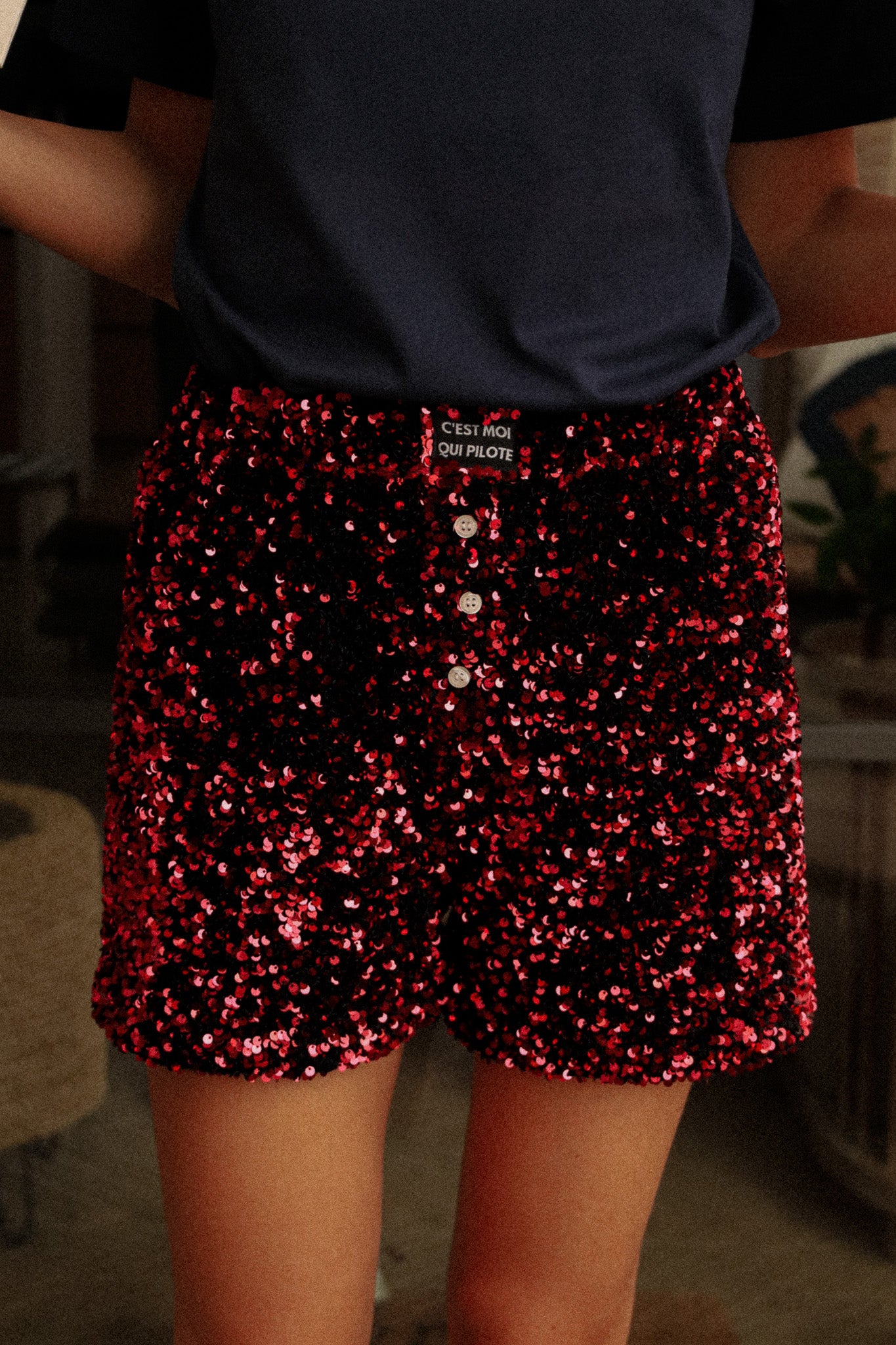 L'iconique caleçon C'est moi qui pilote se décline en une matière STAR : le velours à sequins.