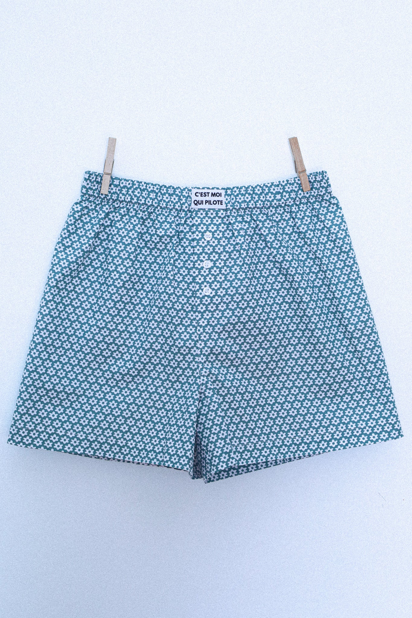 Unisex boxer shorts: a little longer, closed fly and straight cut at the back so you can wear them indoors but also outdoors like shorts "with a twist". The twist is this masculine but feminine, casual but chic style in colorful colors! 🌈