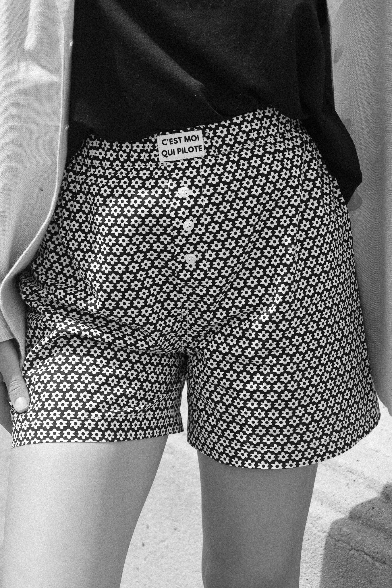 Black and White Flower Pilot Boxer Shorts 🎬