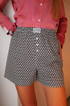 Unisex boxer shorts: slightly longer, closed fly and straight cut at the back so they can be worn indoors but also outdoors like shorts "with a twist". The twist is this masculine yet feminine, casual yet chic style with colorful colors! 🌈