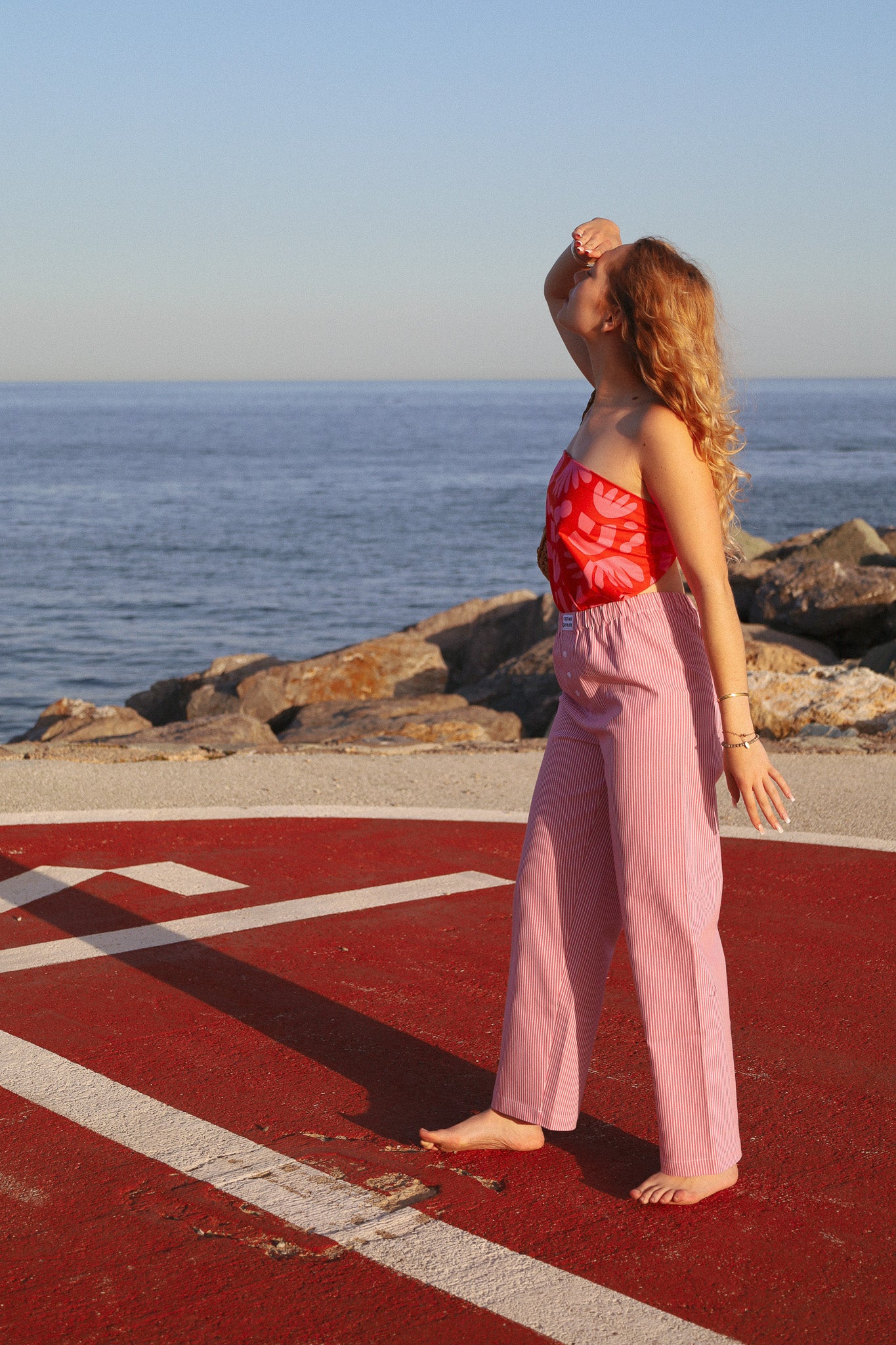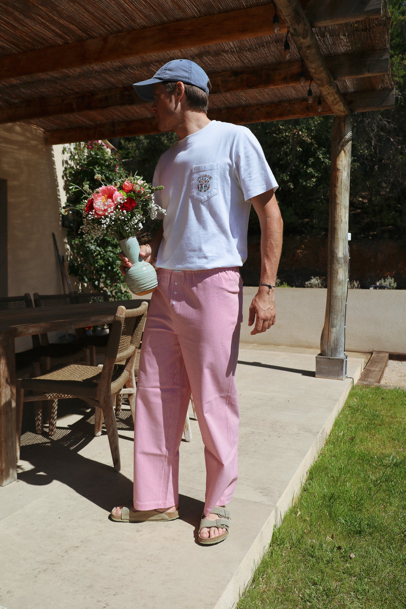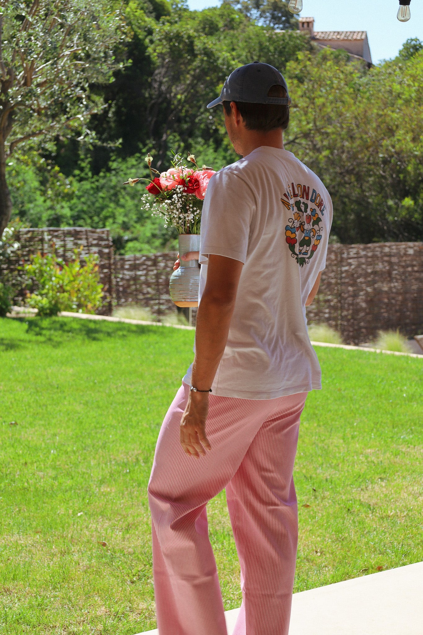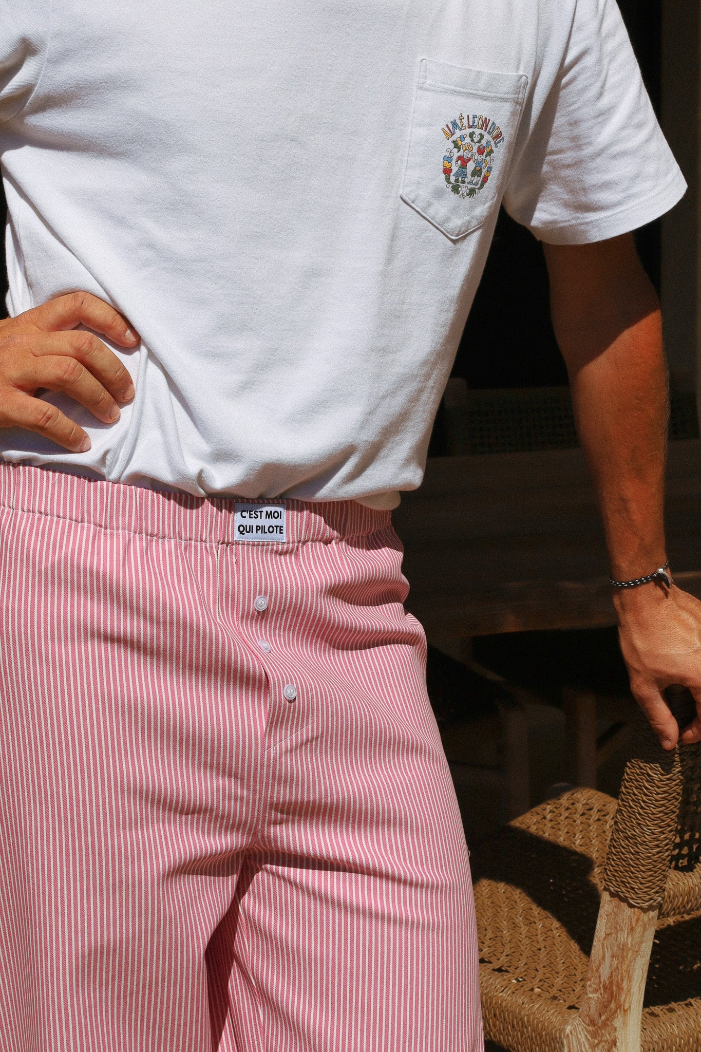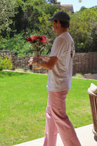 Unisex pants designed to combine comfort and style. These pants embody the relaxed elegance of the bustling streets of Provence. Their soft hue recalls the warm shades of the Mediterranean sky at dusk, while their classic cut offers a timeless silhouette, perfect for strolling through picturesque markets or relaxing on a terrace under the midday sun.