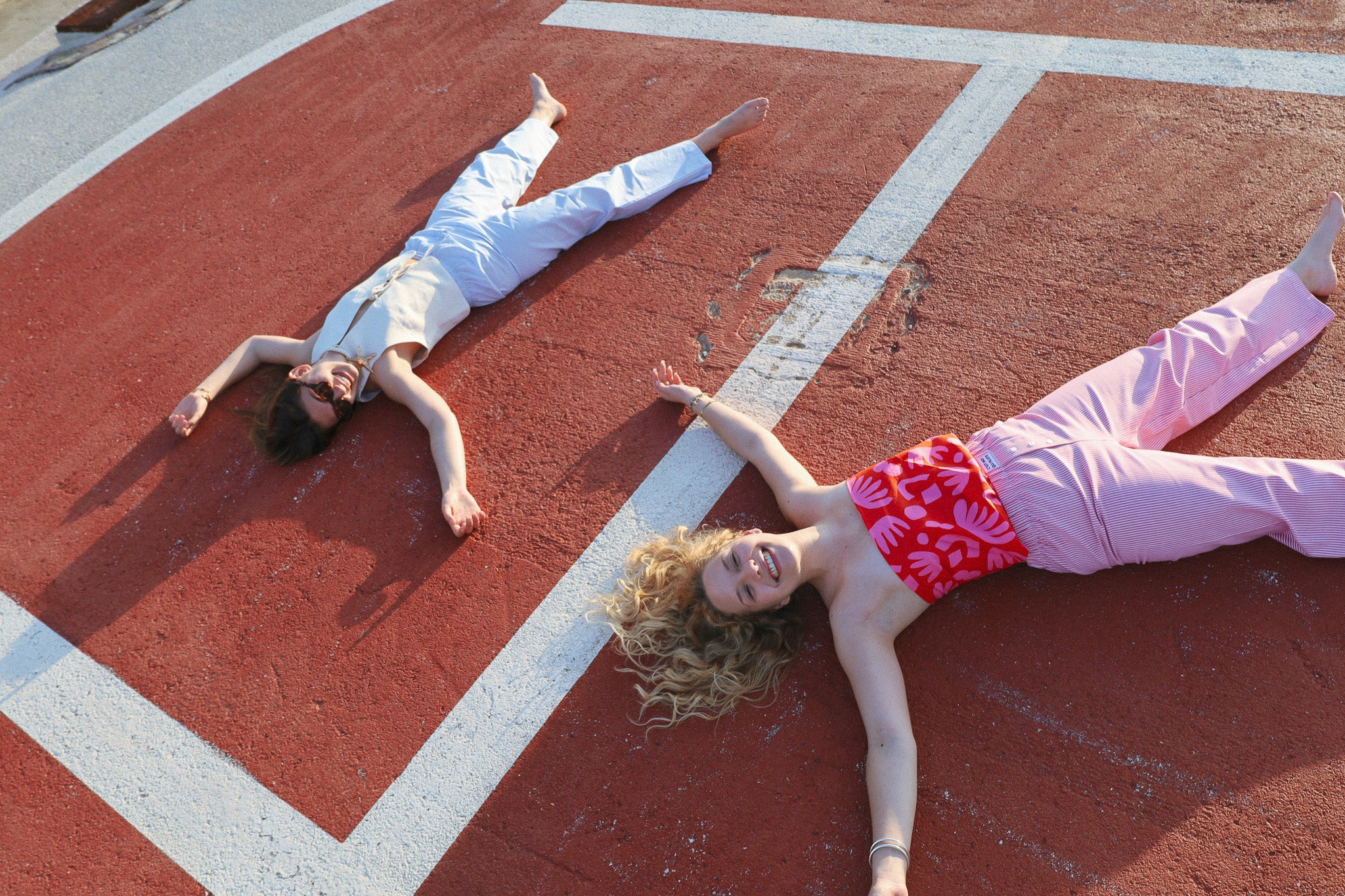 Iris is wearing a size S here. Nathan is wearing a size M.