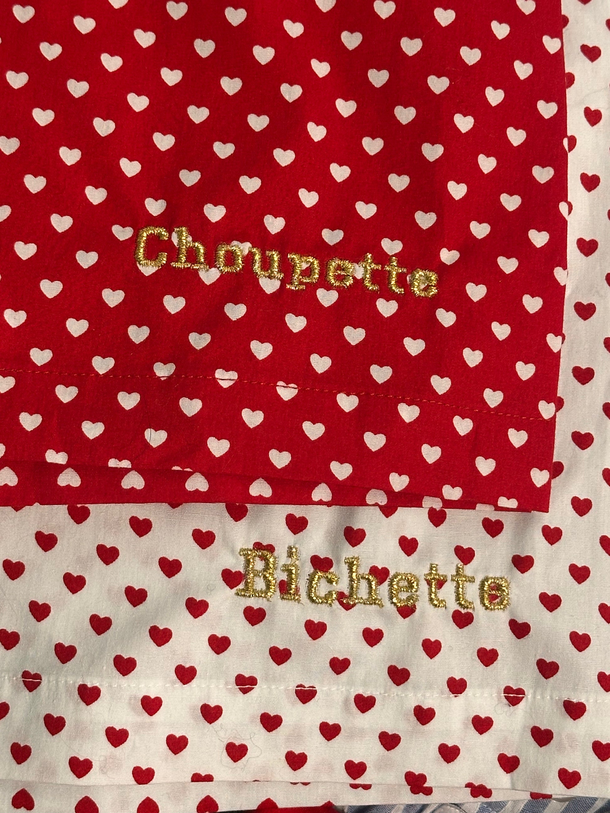 Choisissez votre police, votre couleur de fil et précisez ensuite votre texte dans la zone "Note" de votre panier.