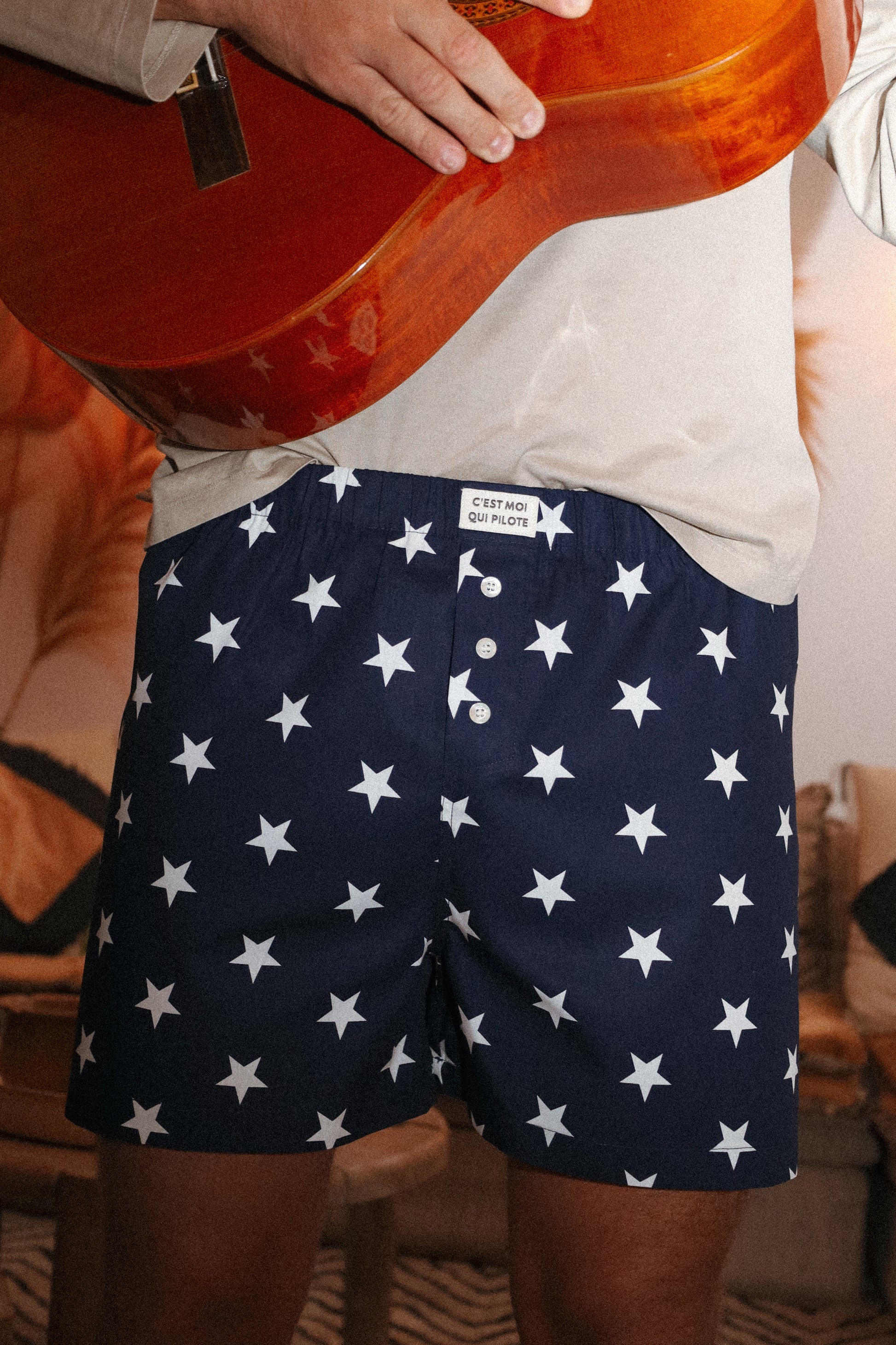 Il s’agit d’une popeline de coton, matière légère et douce, la matière originelle et incontournable du caleçon.