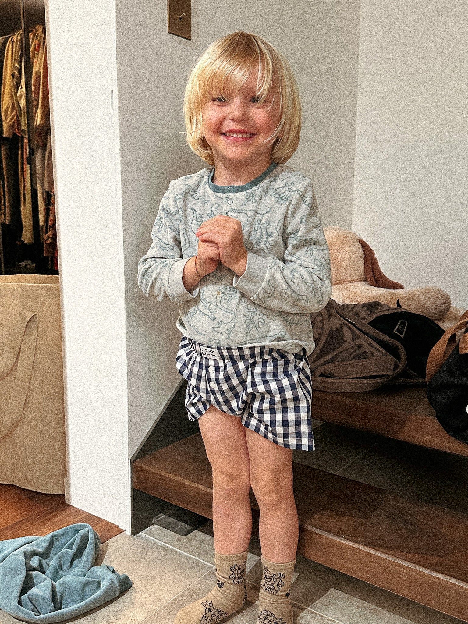 Caleçon Pilote Enfant Vichy bleu