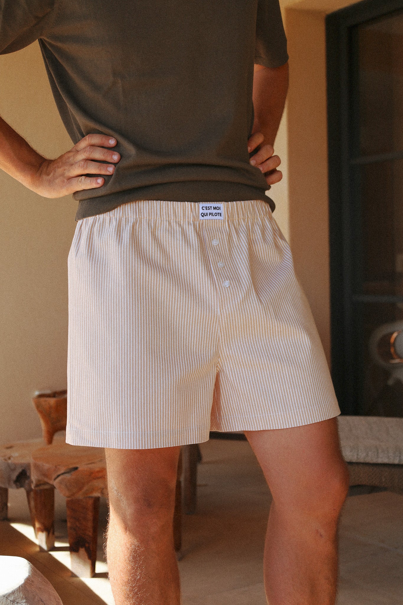 Caleçon Pilote Rayures Beige